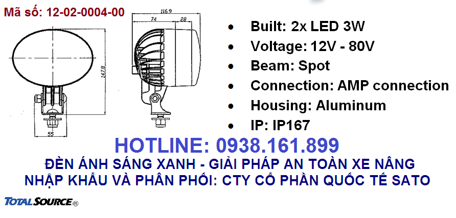 Đèn cảnh báo xe nâng xanh dương TOTAL SOURCE - Giải pháp an toàn xe nâng