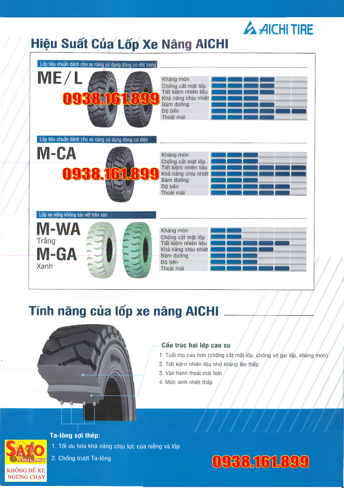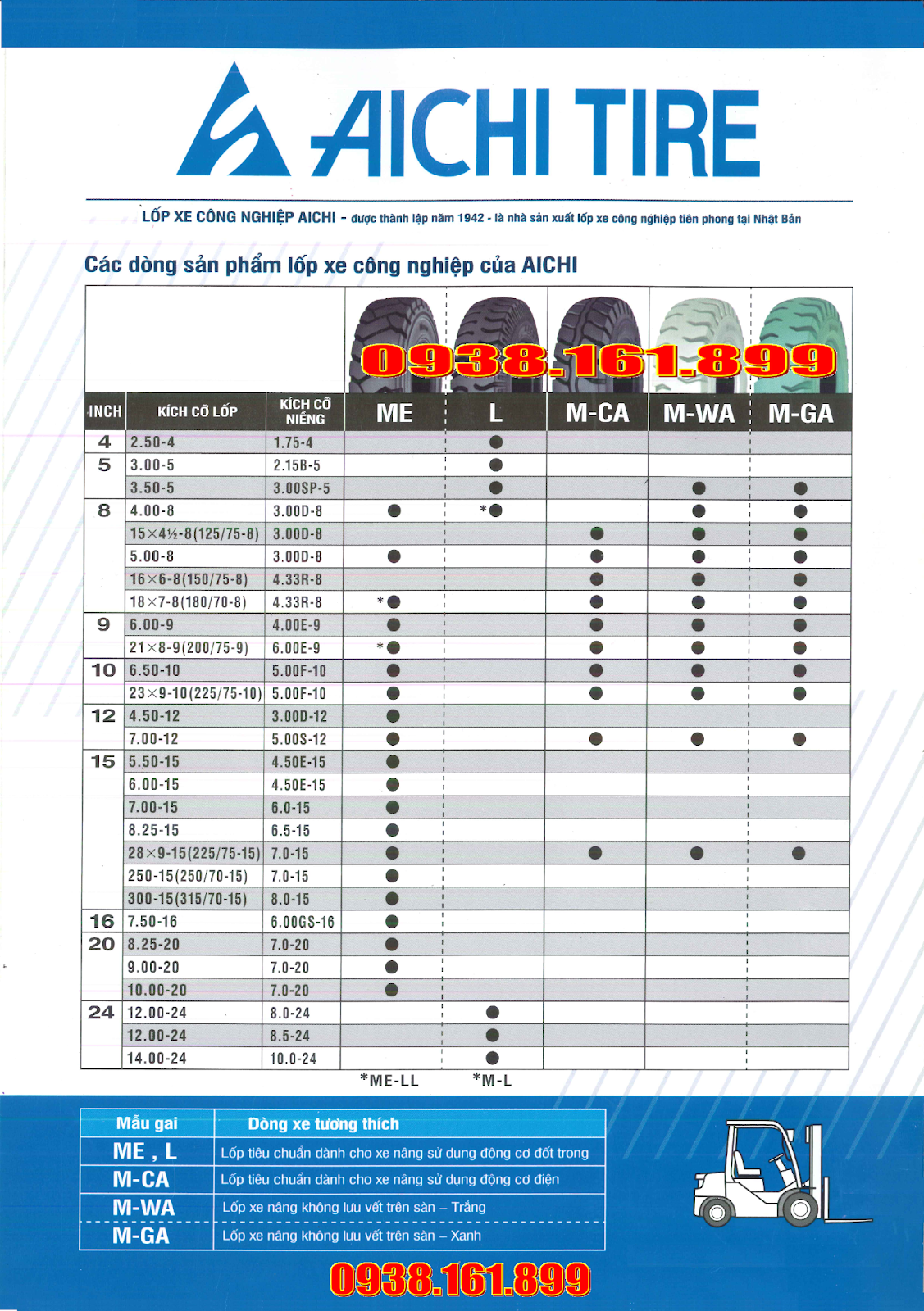 Vỏ xe nâng Aichi được nhập khẩu từ Nhật Bản, sản phẩm chất lượng tốt